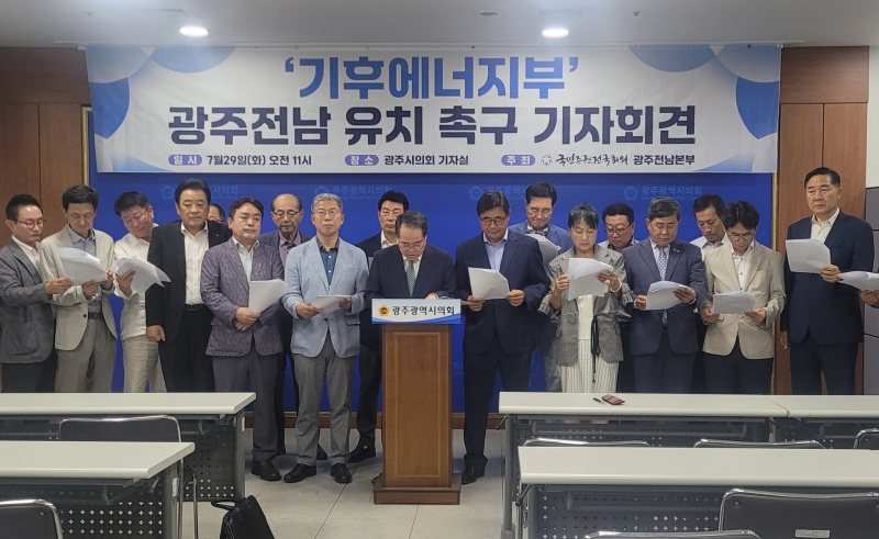 국민주권전국회의 광주전남본부는 29일 광주광역시 의회에서 기자회견을 열고, 정부가 신설을 추진 중인 기후에너지부를 광주·전남 공동혁신도시에 설치할 것을 촉구했습니다.