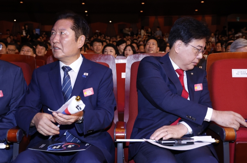 다만 정 대표는 전날 페이스북에 '내일 80주년 광복절 경축식에 참석합니다. 국가 행사라 국힘이라도 불가피한 경우 의례적 악수는 할 수도 있겠으나'라고 적어 이날 경축식에서 두 사람의 악수 장면이 연출될 수도 있다는 전망이 나오기도 했습니다.